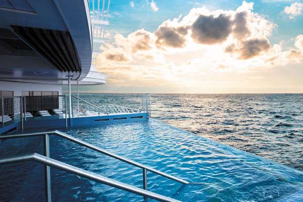Incomparable craftsmanship and meticulous attention to detail are evident everywhere – from the suite’s unique design choices, such as rare works of art, to grand features like an in-suite spa retreat and Steinway piano. The only thing to rival the luxurious interior that includes two magnificent bedrooms is the spectacular ocean view from private balconies that include a Tresse Minipool high atop the ship.