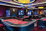 Step into the richness of an emerald green dining area perfectly ensconced within a spacious, sumptuous living room. Just outside is a private balcony with a table and chairs, perfect for in-suite breakfast. The master bedroom is large and inviting, its soothing color palette perfect for a peaceful night's rest on your King-Size Elite Slumber™ Bed. Two full baths make it a perfect space for entertaining new friends on the high seas.